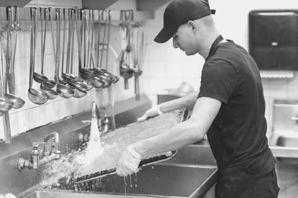 Expert dishwashing staff ensuring sparkling, 5-star cleanliness for all kitchenware — supporting a seamless, high-end dining experience.